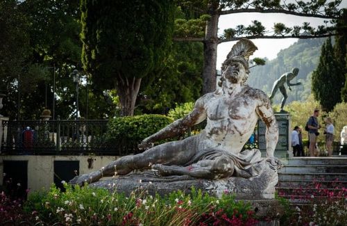 Départ en autocar et avec la guide pour l'Achilléion, résidence néoclassique de l'impératrice Sissi. Retour à la ville. Promenade le long de la vieille forteresse (Paleo Frourio). Traversée du Bosketto (jardin dédié aux frères Durrell. Visite du musée d'art asiatique installé dans le palais St Michel et St Georges, du musée byzantin, puis du musée d'art byzantin dans la plus vieille église de Corfou, Antivouniotissa.